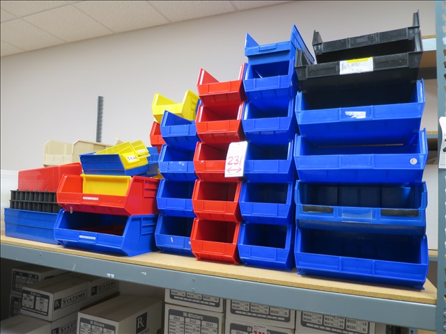 LOT, MISC POLY BINS ON THIS UPPER SHELVING SECTION (STORE ROOM)