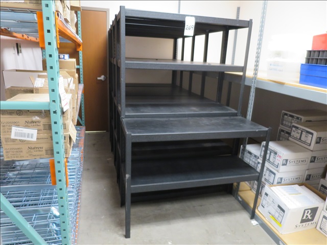 LOT, (5) FULL SIDE & (1) COUNTER HEIGHT 4' METAL SHELVING UNITS (STORE ROOM)