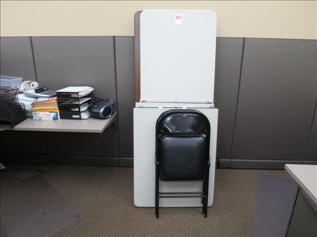 LOT, (4) 6' POLY FOLDING TABLES, (1) 6' WOOD FOLDING TABLE & (2) FOLDING CHAIRS (MODULAR OFFICE)