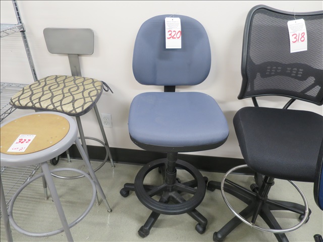 PADDED STOOL W/BACK ON CASTERS