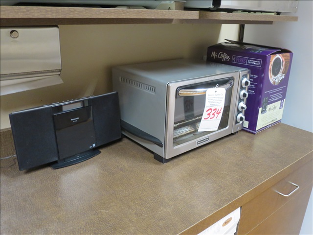 LOT, MR COFFEE 12-CUP COFFEE MAKER, KITCHENAID TOASTER OVEN, PANASONIC MP3 PLAYER & LOOSE CONTENTS IN KITCHEN CABINET (LUNCH ROOM)