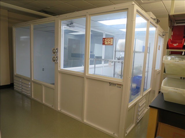 APPROX 10'W X 14'D X 8'H 2-SECTION MODULAR CLEAN ROOM W/(2) DOORS, LIGHTS, BOLTS TO FLOOR, SS SINK, HEPA AIR SYSTEM (LAB 5)