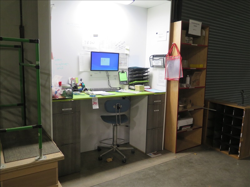 6' SHOPBUILT SHIPPING DESK W/CHAIR & CONTENTS