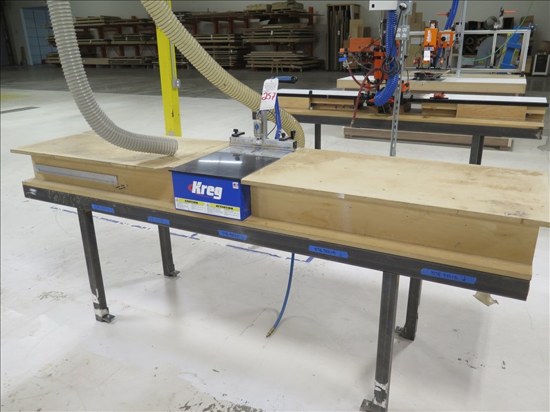 BENCHTOP PNEUMATIC POCKET DRILL W/8' METAL BASE TABLE (INCLUDES THE FLEX DUCT & METAL DUCTING SPIDER/ADAPTER, NO METAL DUCTING BEYOND THE SPIDER)