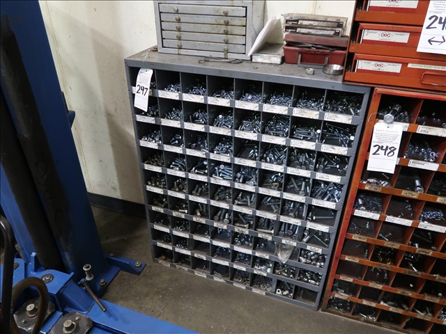 LOT, ASSORTED NUTS & BOLTS ON THIS CABINET W/CABINET