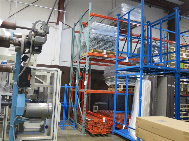 (2) SECTIONS OF 3'8" X 16' X 16' FOOTED HEAVY DUTY INDUSTRIAL PALLET RACKING (1 SECTION IS DISSASSEMBLED-$75 REFUNDABLE GRINDING DEPOSIT REQUIRED)