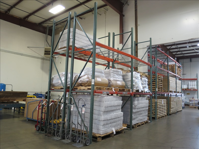 (2) SECTIONS OF 3'8" X 16' X 16' FOOTED HEAVY DUTY INDUSTRIAL PALLET RACKING ($75 REFUNDABLE GRINDING DEPOSIT REQUIRED)
