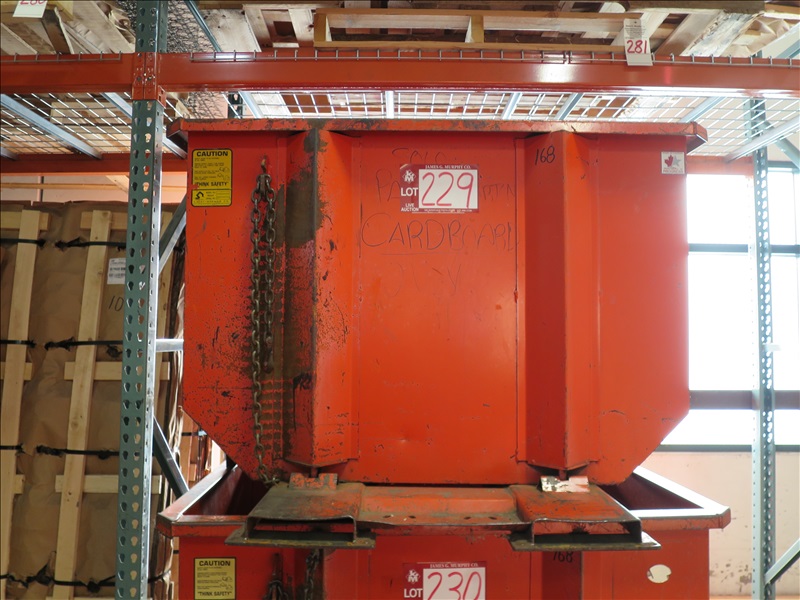 TILTING DUMP BIN MOUNTED ON FORKLIFT ATTACHMENT