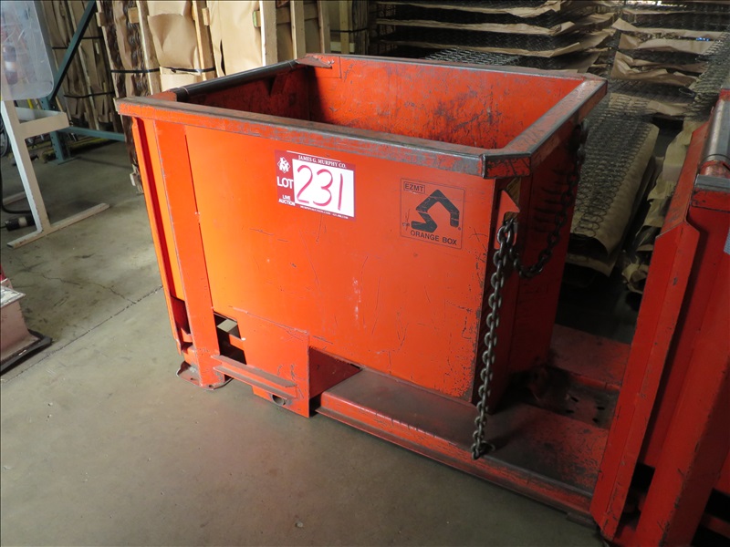 TILTING DUMP BIN MOUNTED ON FORKLIFT ATTACHMENT