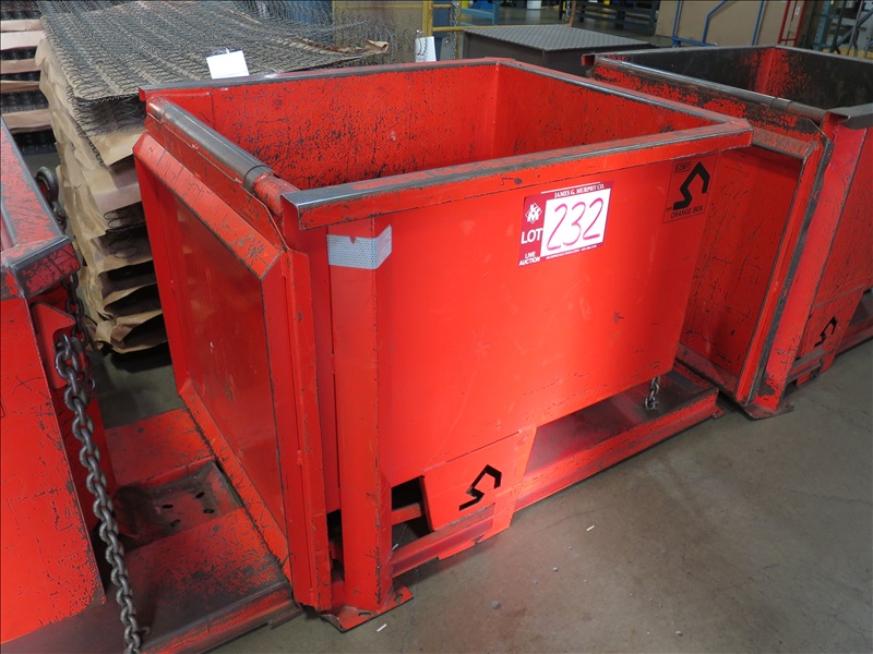 TILTING DUMP BIN MOUNTED ON FORKLIFT ATTACHMENT