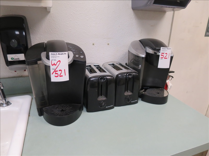 LOT, (2) KEURIG K-CUP COFFEE MAKERS & (2) PROCTOR SILEX 2-SLICE BAGEL TOASTERS