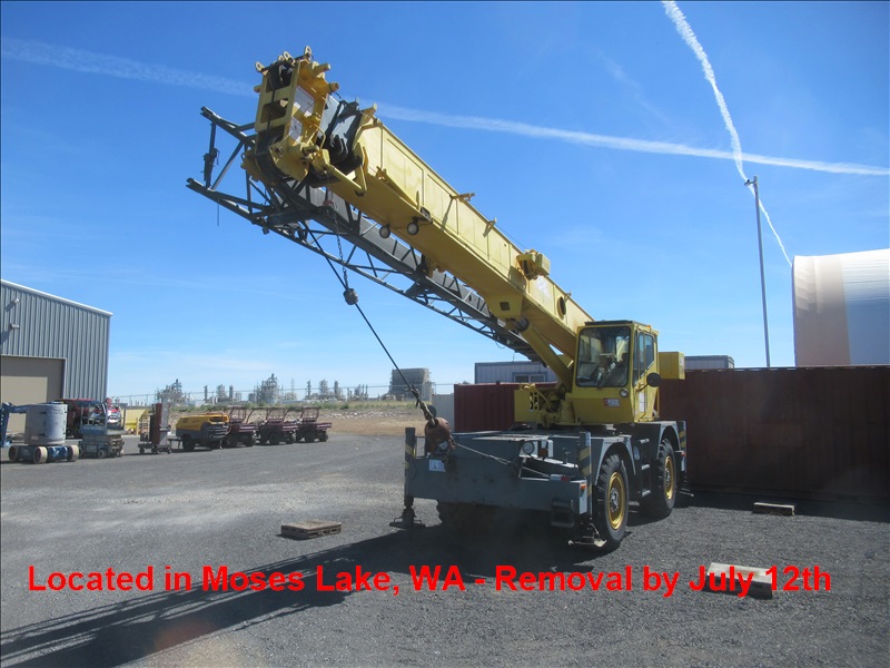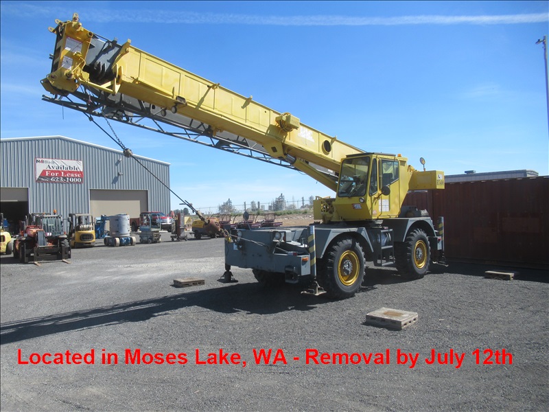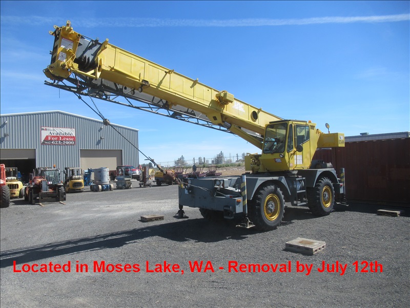 22-TON 4X4 ROUGH TERRAIN CRANE, 27'-70' 3-SECTION BOOM, 15' JIB, STANDARD LOAD MOMENT & ANTI 2-BLOCK SYSTEM, CUMMINS 4BT3.9L 6-CYLILNDER TURBO DIESEL ENGINE, FULL POWERSHIFT TRANSMISSION W/(3) FORWARD & (3) REVERSE GEARS, HYDRAULIC OUTRIGGERS, HRS: 7,125