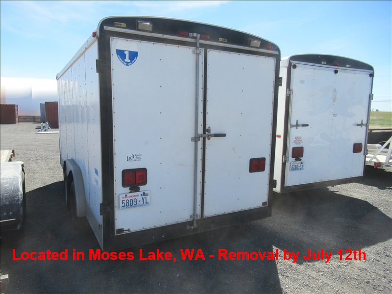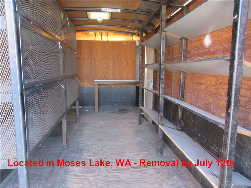 16' TANDEM AXLE CARGO TRAILER, MAN & BAR DOORS, SHELVING, ST205/75R15 TIRES