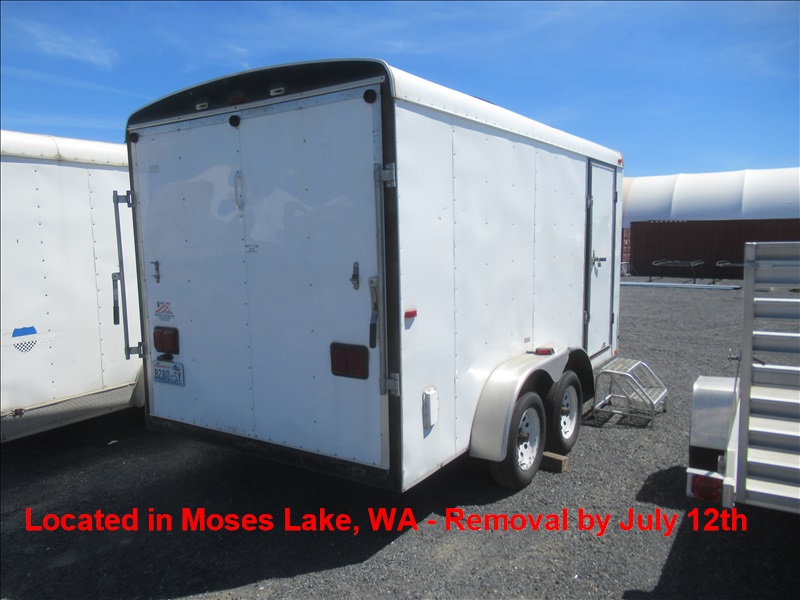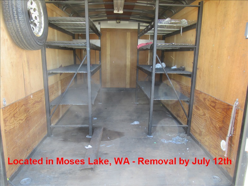 14' TANDEM AXLE CARGO TRAILER, MAN & BARN DOORS, SHELVING, ST205/75R15 TIRES