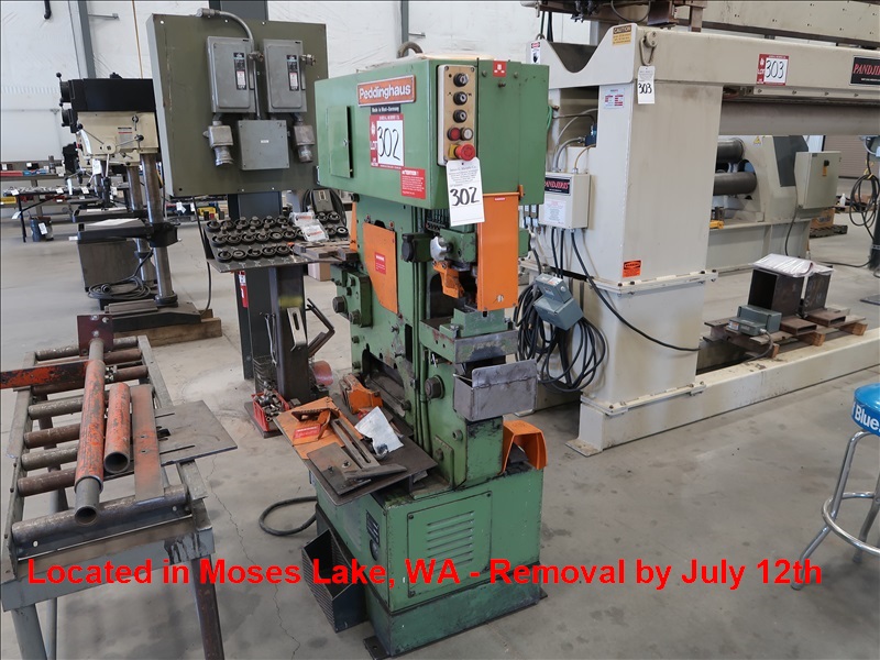 IRON WORKER, 88-TON PUNCH CAPACITY, 3/4"-1-1/4" PUNCH CAPACITY, 4" X 4" X 3/8" ANGLE, 1-1/4" ROUND BAR, 1-3/16" SQUARE BAR, 1/2" RECTANGULAR BAR, 14" X 5/8" FLAT BAR SHEAR CAPACITY DIES, MARKED DIES & ACCESSORIES