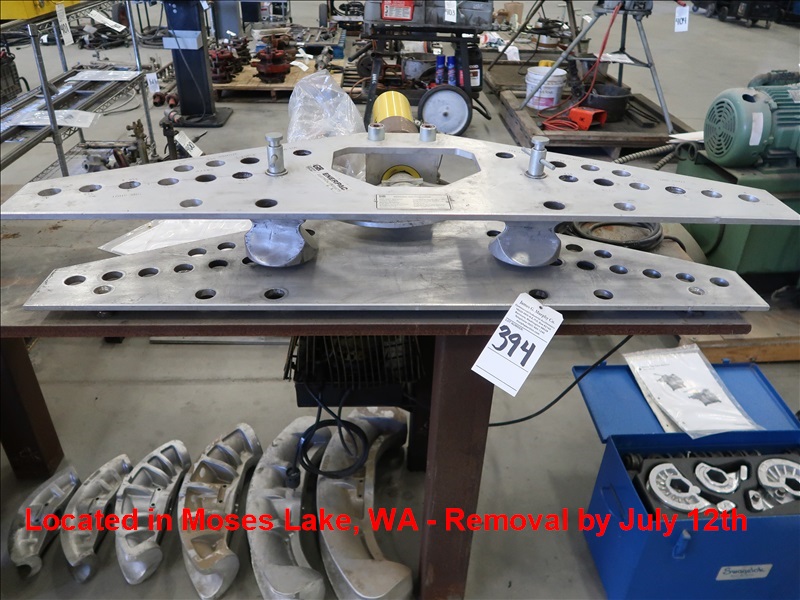 1-1/2"-4" PIPE & TUBE BENDER W/HYDRAULIC POWER PACK MOUNTED ON TABLE W/STEEL BOX FOR SHOES