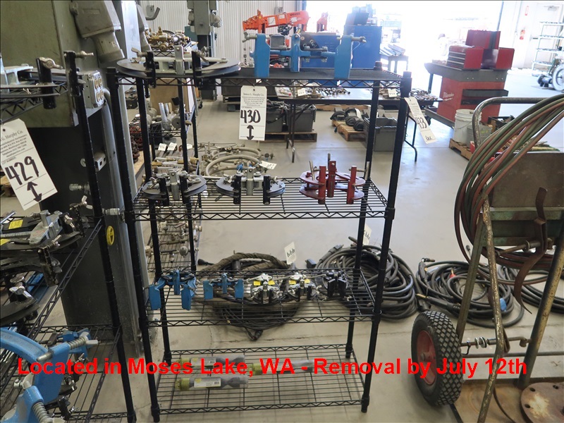 LOT, ASSORTED PIPE CLAMPS ON THIS RACK