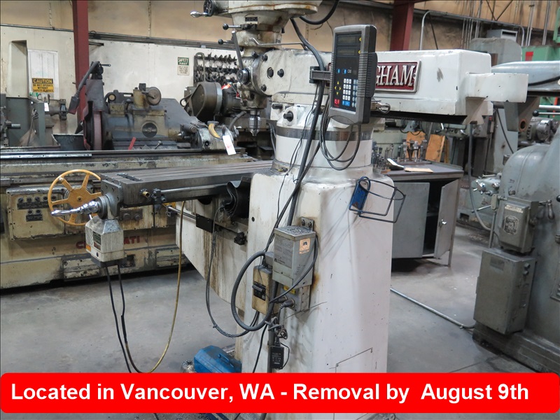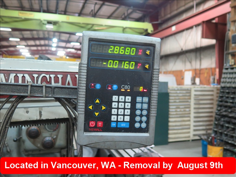 3 HP VERTICAL MILLING MACHINE, 10" X 54" POWER FEED TABLE, NEWALL C80 DRO, 220/440V, 3 PHASE