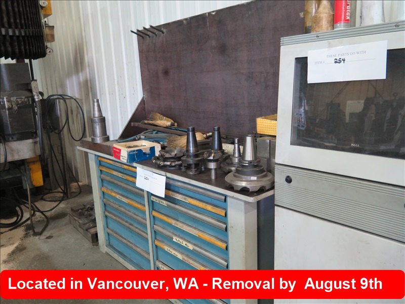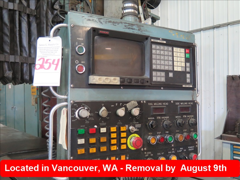 60" X 240" OPEN SIDE PLANER MILL W/YANCEY RAIL HEAD, 60" VERTICAL, 108" ARM, YANCEY SIDE HEAD, GN11 SERIES CONTROLS , TO INCLUDE TRANSFORMER, (2) LISTA CABINETS W/CONTENTS & CABINET W/SPARE PARTS