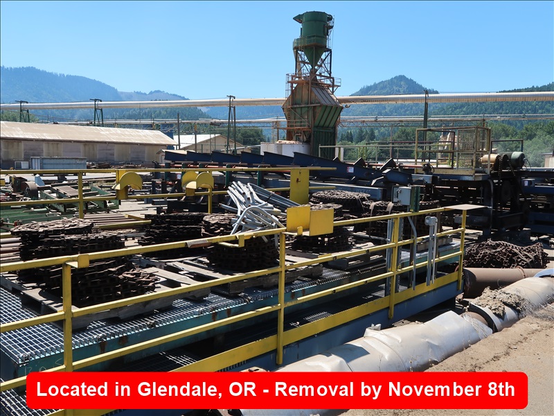 24' 42-BIN PUSH LUG SORTER, 120' 6-STRAND LUGGED TRANSFER, (4) 30' 6-STRAND TAKE AWAY TRANSFERS LOTS 2015-2022 ARE LOCATED AT PLYWOOD MILL IN GLENDALE OREGON, YOU MUST MAKE AN APPT TO PREVIEW & BUYERS ARE SOLELY RESPONSIBLE FOR THE REMOVAL & SECURITY OF THESE LOTS & MUST ABIDE BY ALL SITE RULES, ALL LOTS ARE LOCATED BY FUELING STATIONS