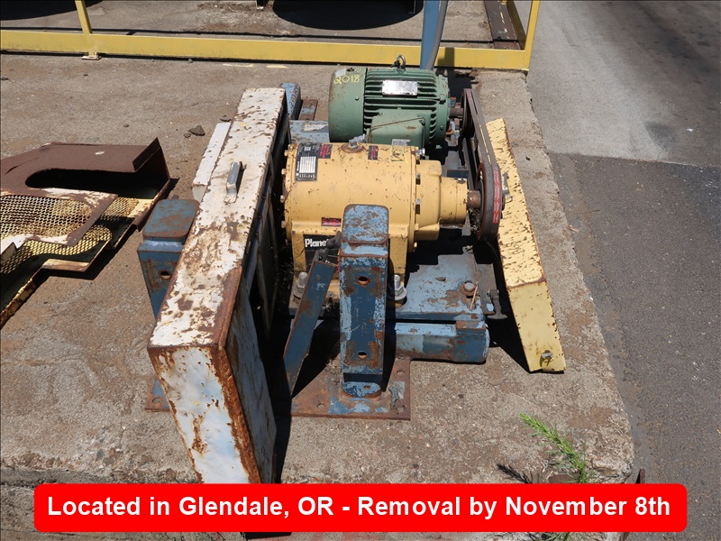 5 HP MOTOR TO REX MERCURY 126 RPM REDUCER (LOCATED BY FUEL EMERGENCY SHUT OFF) LOTS 2015-2022 ARE LOCATED AT PLYWOOD MILL IN GLENDALE OREGON, YOU MUST MAKE AN APPT TO PREVIEW & BUYERS ARE SOLELY RESPONSIBLE FOR THE REMOVAL & SECURITY OF THESE LOTS & MUST ABIDE BY ALL SITE RULES, ALL LOTS ARE LOCATED BY FUELING STATIONS