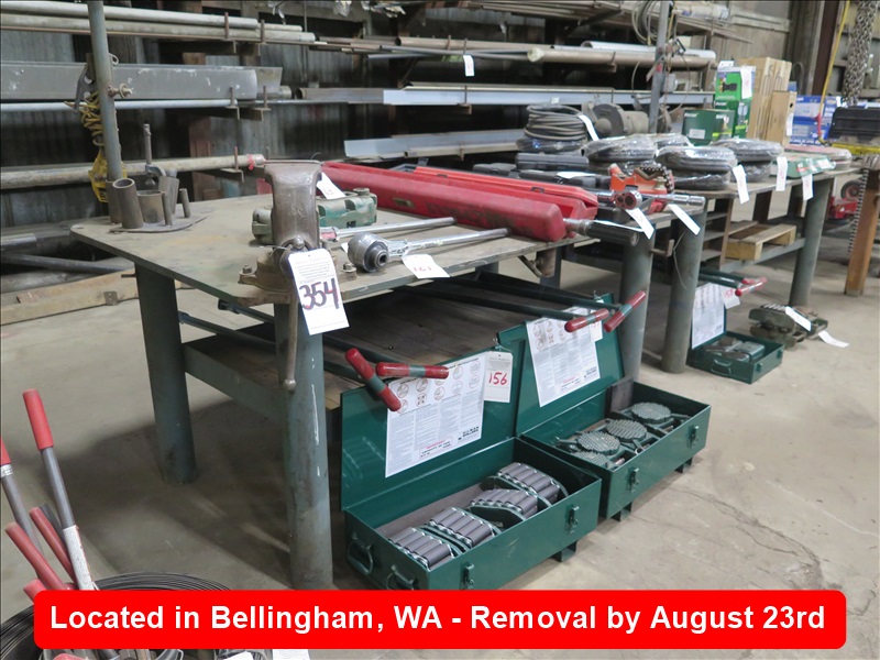 1" X 4' X 6' STEEL WORKBENCH W/CHAIN VISE & LIGHT STAND