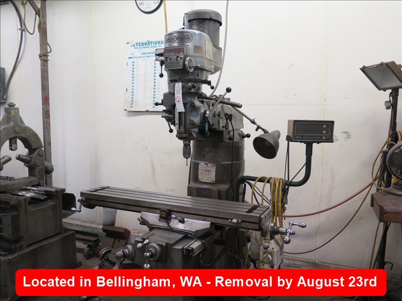 2 HP VERTICAL MILLING MACHINE, 9" X 48" T-SLOT POWER FEED TABLE, MITUTOYO DRO, 208V, 3 PHASE