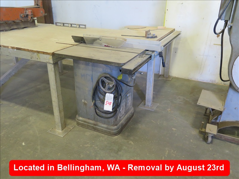 TILTING ARBOR TABLE SAW W/DELTA UNI FENCE SAW GUIDE, ALUMINUM FRAME TABLE