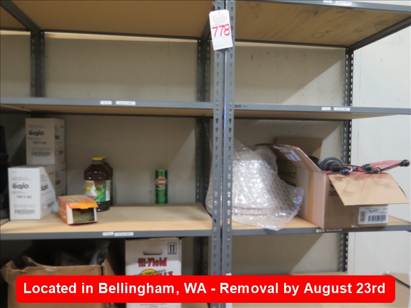LOT, MISC SUPPLIES ON THESE (2) SHELF UNITS W/SHELVING