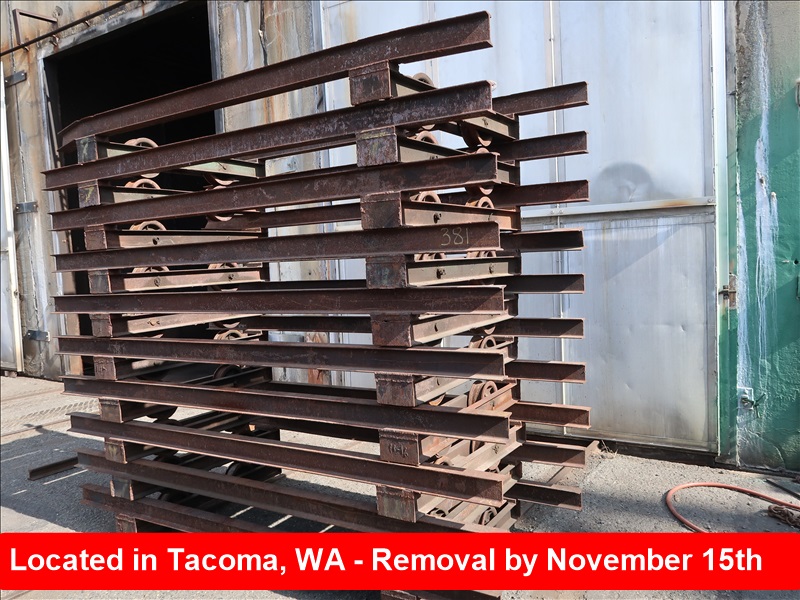 LOT, (10) 48"W X 112"L I-BEAM FRAMED KILN CARTS W/6' CENTERS