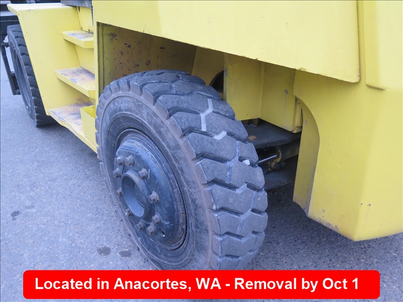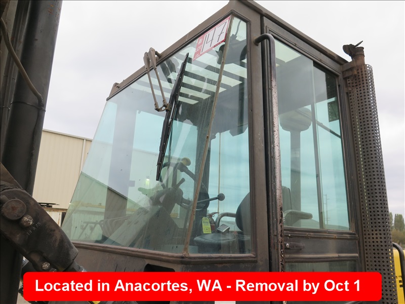 16,600 LB DUAL CUSHION TIRE FORKLIFT, 212" 2-STAGE MAST, SIDE SHIFT, FORK POSITIONER, PERKINS DIESEL, ECLOSED CAB, GLASS 100%, A/B, HOUR METER READS: 9,378