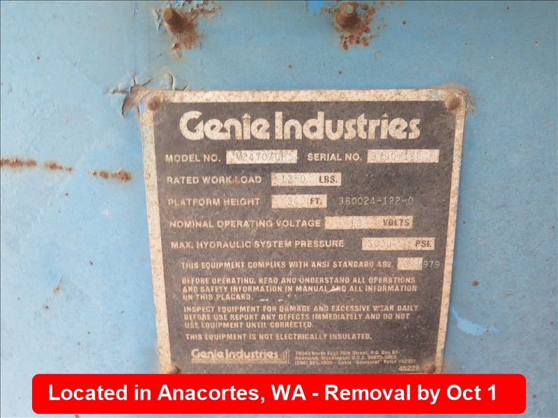 1,250 LB CAP, 24' PLATFORM HEIGHT SCISSOR LIFT, PROPANE, HOUR METER READS: 2,522