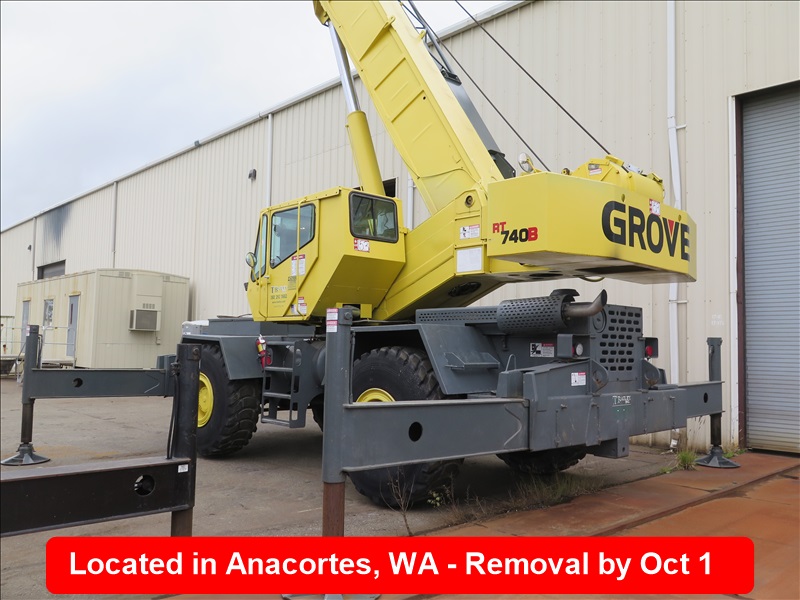 40-TON HYDRAULIC ROUGH TERRAIN CRANE, 110' 3-SECTION BOOM, PAT DS350G DIGITAL LOAD MOMENT INDICATOR, 6 CYL CUMMINS DIESEL, 32' TO 56' EXTENDABLE JIB, OUTRIGGERS, ANTI-TWO BLOCK SYSTEM, MAIN & AUX BLOCKS, HOUR METER READS: 6,125