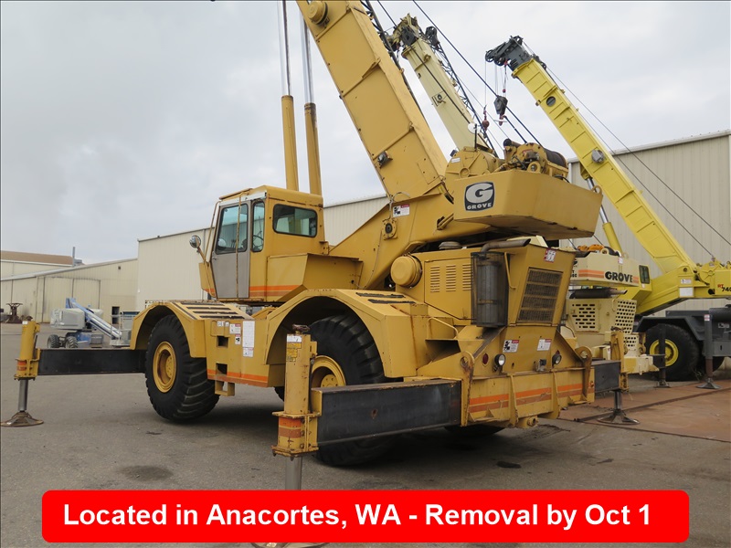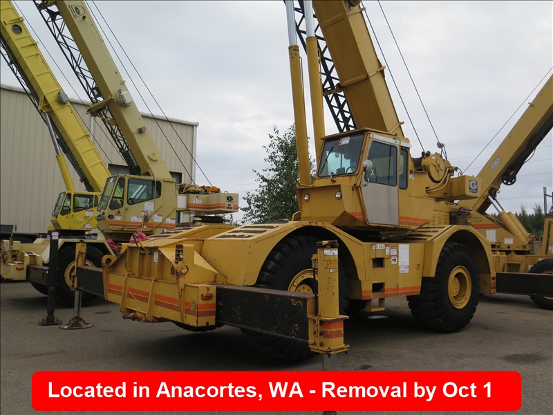 35-TON HYDRAULIC ROUGH TERRAIN CRANE, 104' 2-SECTION BOOM, LOADWISE 316 LOAD MOMENT INDICATOR, 3208 CAT DIESEL, 32' JIB, OUTRIGGERS, ANTI-TWO BLOCK SYSTEM, 26.5-25, HOUR METER READS: 5,085