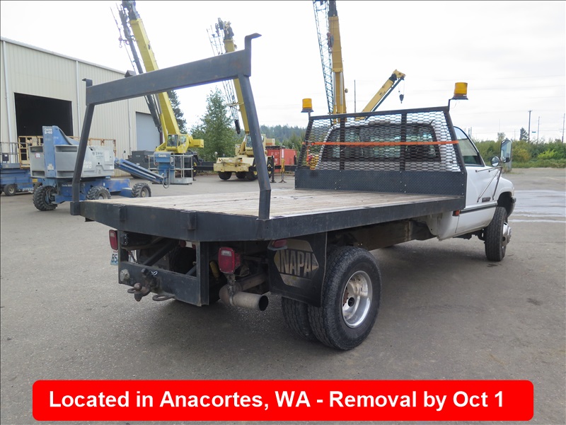 10' FLATBED, CUMMINS TURBO DIESEL, 5 SPD, A/C, ODOMETER READS: 272,127