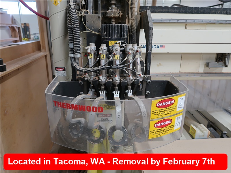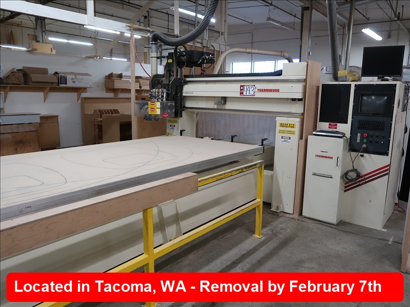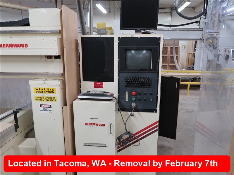 CNC ROUTER, 6-TOOL HOLDER, 5' X 12' VAC TABLE, DYNA SEAL 40 HP VACUUM PUMP, THERMWOOD 91000 SUPER CONTROL, PENDANT CONTROL, 460V, 3 PHASE (ELECTRICAL BREAKS AT SAFETY SWITCH)