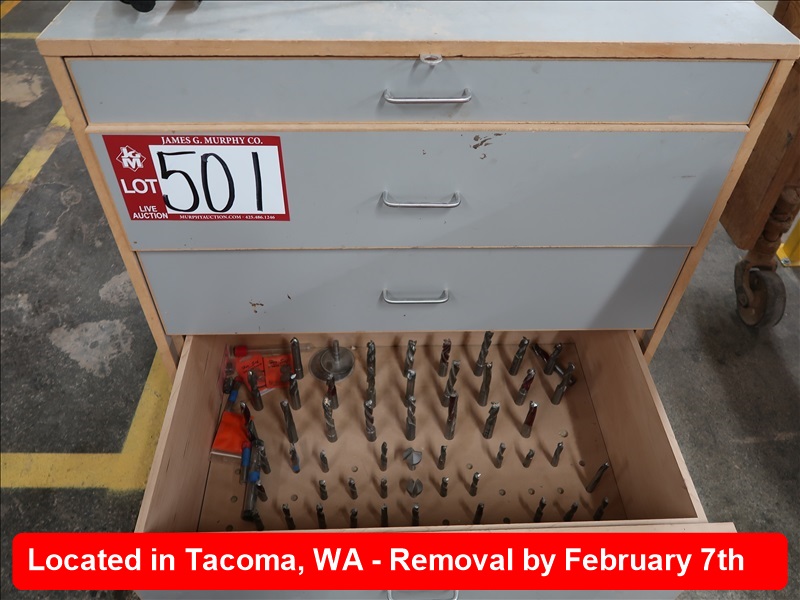 LOT, MISC TOOLING & SUPPLIES IN THIS 4-DRAWER CABINET