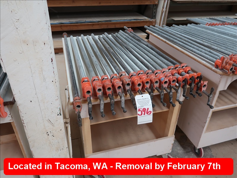 LOT, (15) 4' +/- PIPE CLAMPS W/CART