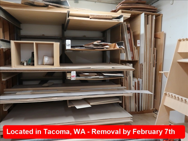 LOT, MISC SHEET GOODS ON CANT RACK W/(2) SIDE CABINETS