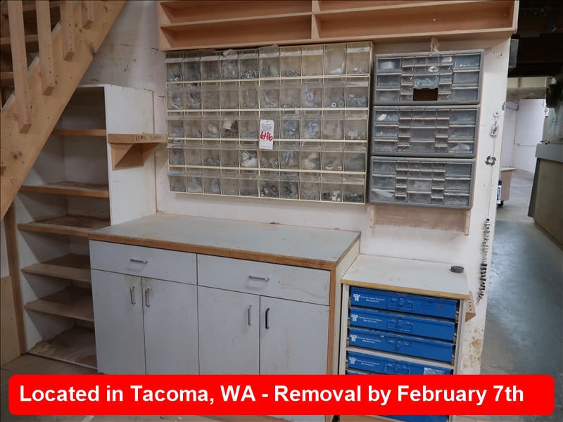 LOT, MISC HARDWARE CABINET & SUPPLIES IN HALLWAY