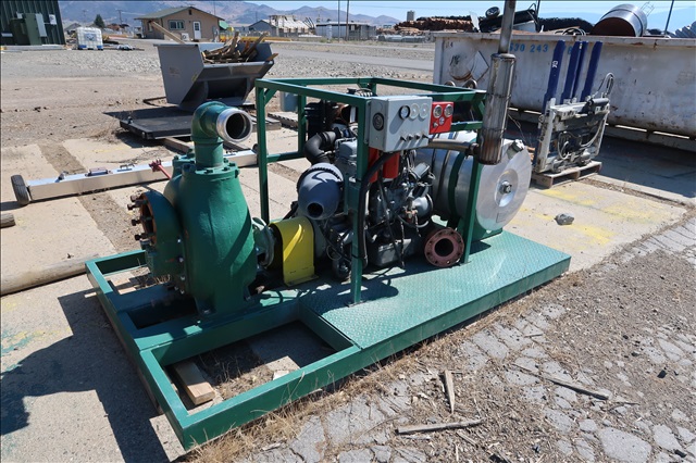 SKID MOUNTED 4" WATER PUMP W/4-CYLINDER GAS ENGINE W/RADIATOR, 50 GALLON STAINLESS STEEL FUEL TANK, 12V BATTERY & CONTROLS