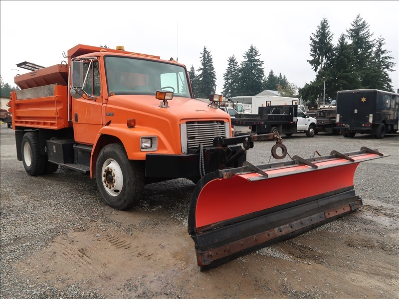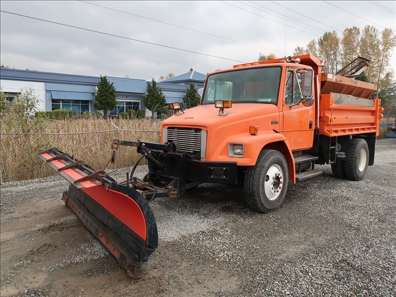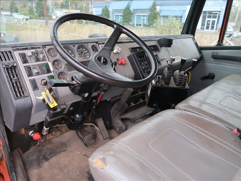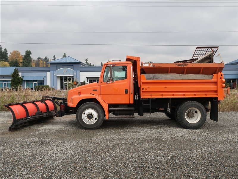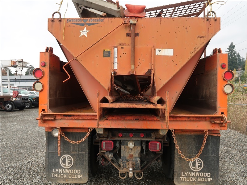 S/A DUMP TRUCK, 10' STEELBOX, CUMMINS 8.3 AUTO, SPRINGSUSPENSION, 150" WHEEL BASE,10' SNOW PLOW, SWENSONSPREADER (MISSING PARTS)