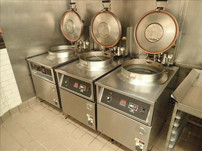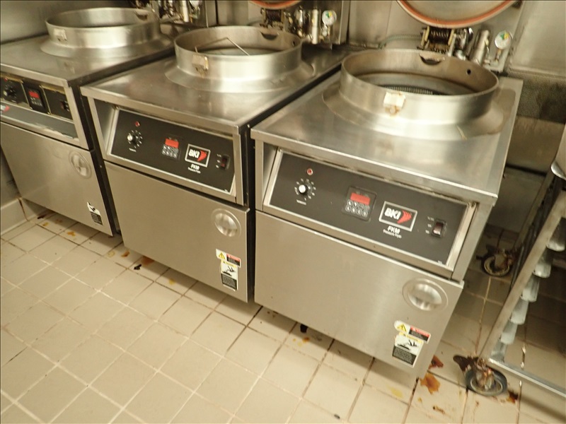 GROUP OF (3) BKI FKM-F 24” PRESSURE FRYERS ON CASTERS