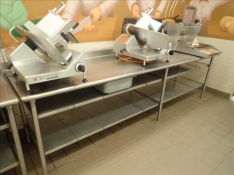(2) 120” S/S TABLES W/BACK SPLASH & DRAWERS