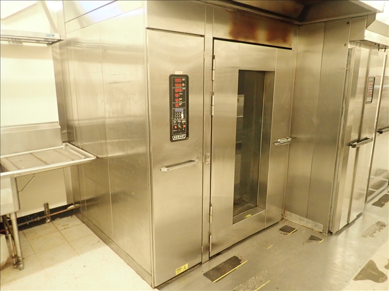 HOBART H0210G2 290,000 BTU 72”, 2-RACK ROTARY BAKERY OVEN WITH S/S STEAM HOOD & CONTROLS