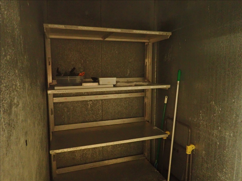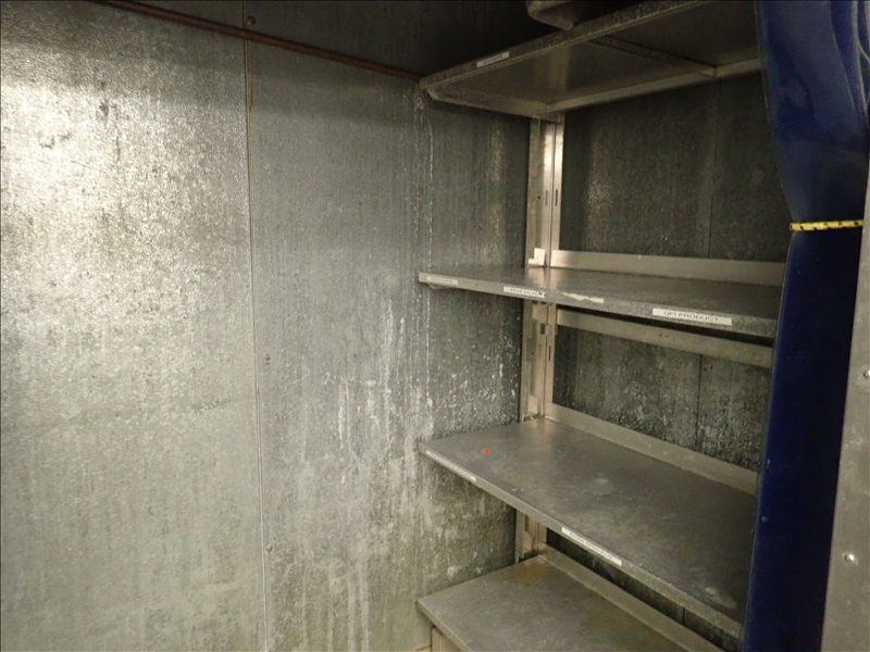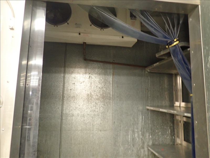 KALT APPROX. 5’X12’X8’ WALK-IN MEAT COOLER, S/S MAN DOOR, LARKIN 2-FAN EVAPORATOR, LIGHTS & MODULARM DL-35 DOOR MONITOR