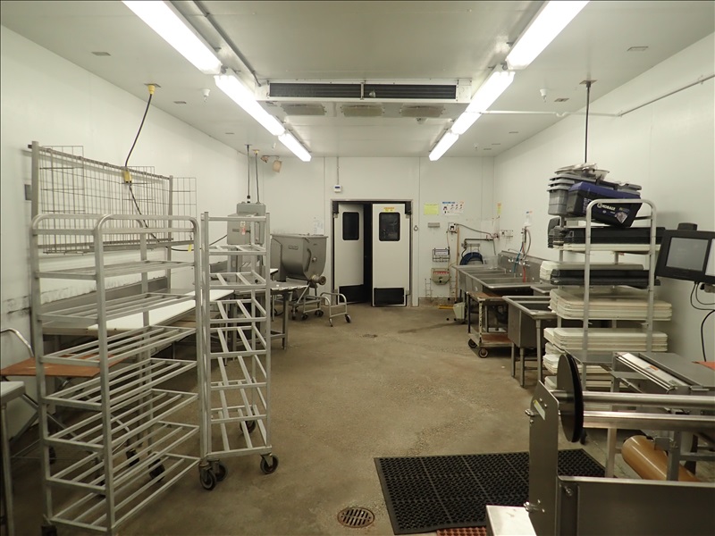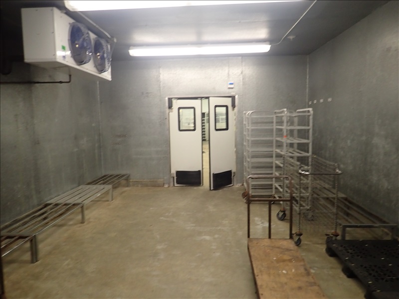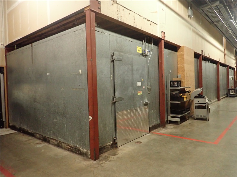 KALT APPROX. 16’X85’X10’ 3-COMPARTMENT WALK-IN MEAT COOLER, 60” DOOR, (2) DOUBLE SWING MAN DOORS, DOUBLE SWING PASS THROUGH DOORS, (3) ANTHONY DOORS, LARKIN 2-FAN, (2) LARKIN 3-FAN EVAPORATORS, (2) HEAT CRAFT 2-FAN EVAPORATORS, LIGHTS, MODULARM DOOR MONIT
