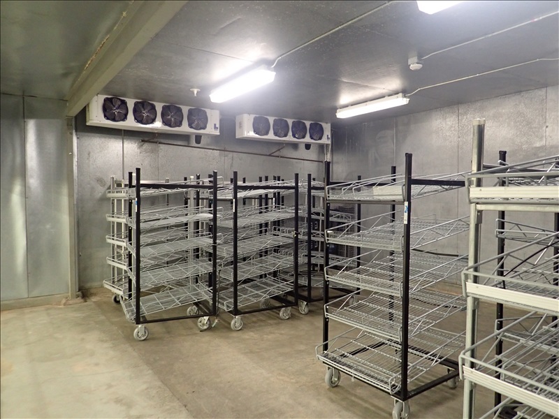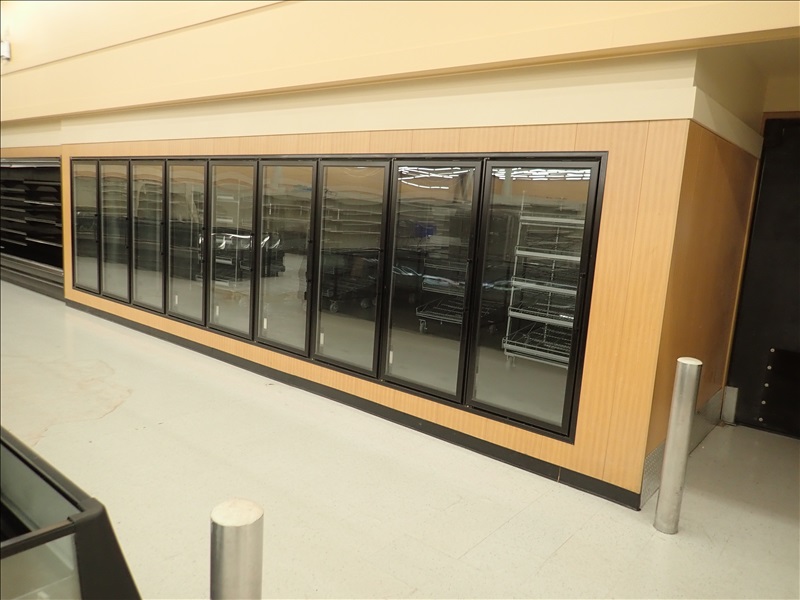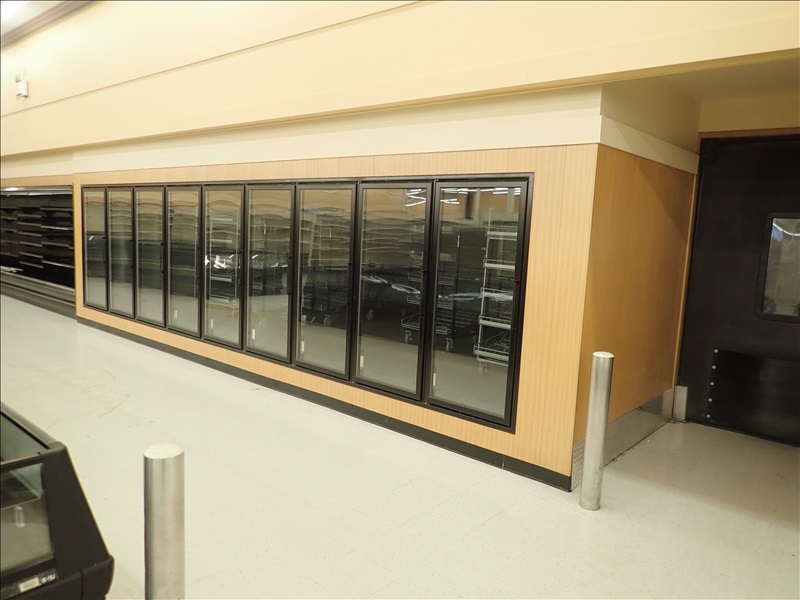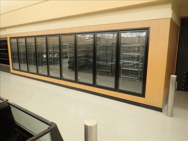APPROX. 24’X20’X10’ WALK-IN DAIRY DISPLAY COOLER, (9) ANTHONY GLASS DOORS, HILL PHOENIX 60” DOOR, (2) LARKIN 4-FAN EVAPORATORS, LIGHTS & MODULARM DL-35 DOOR MONITOR