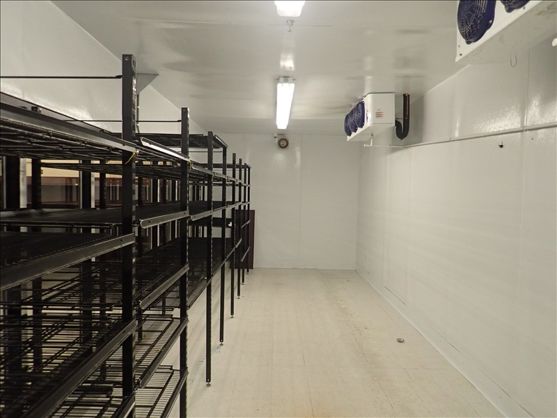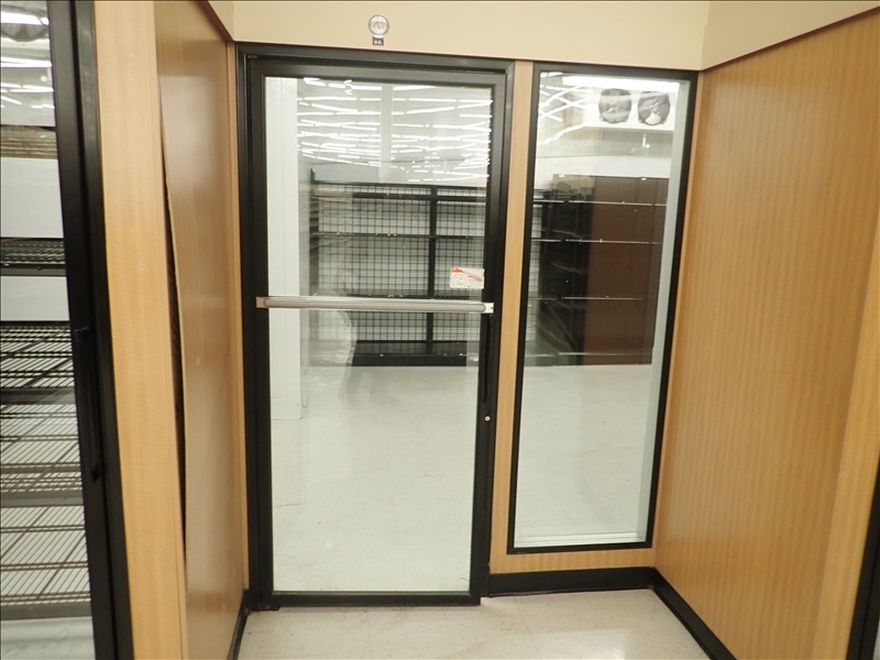 KYSOR CUSTOM BUILT APPROX. 50’ L-SHAPED WALK-IN BEER COOLER, (12) ANTHONY GLASS DOORS, MAN DOOR, (3) LARKIN 3-FAN EVAPORATORS, LIGHTS & SHELVING