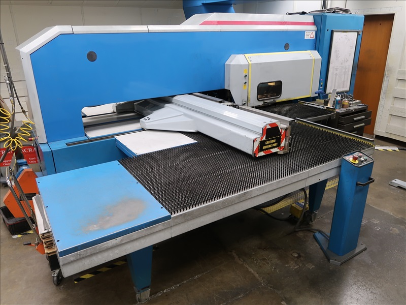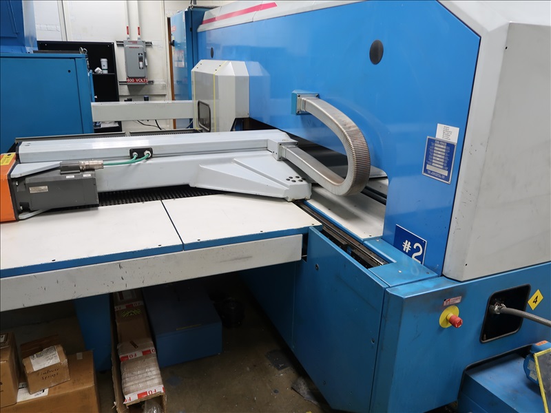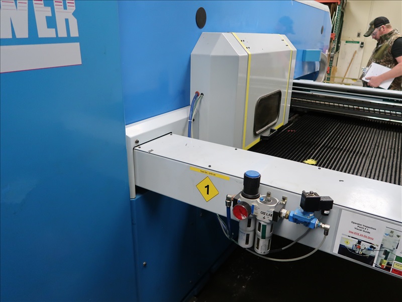 90 STATION CNC TURRIT PUNCH, 6' X 14' LANDING TABLE, 12' AUTO LOADER, 3x400V, 3X80AMP, 60HZ, 3-PHASE, AUTOMATIC OILER, HYDRAULIC PUMP W/ TANK, 230KN PUNCHING FORCE, 300 BAR MAX WORKING PRESSURE, W/SIEMENS SINUMERIK CONTROLS, S/N: 9.2-a42071297
